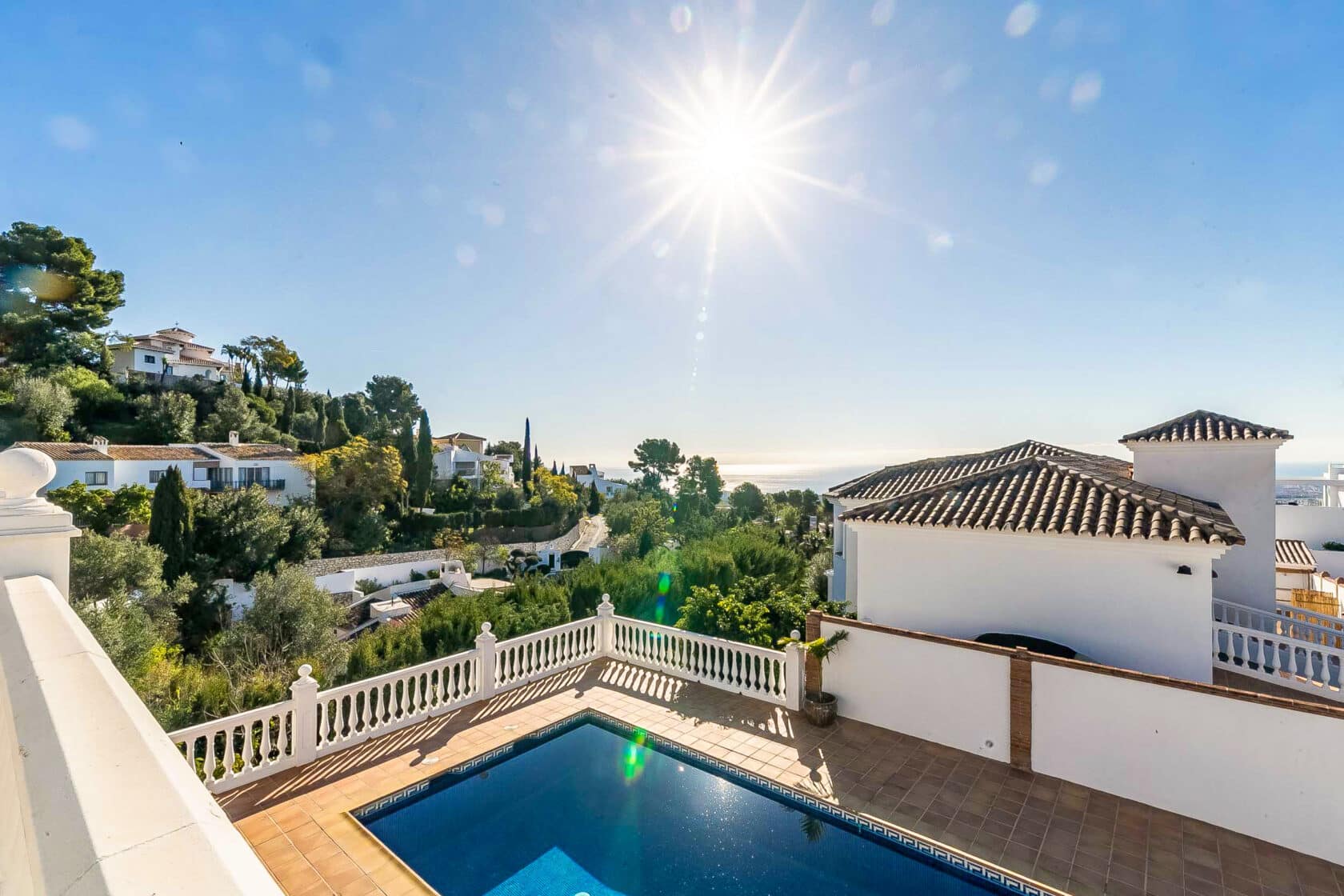This beautiful villa is located next to Mijas Pueblo, a stunning white mountain village, about 400 meters above sea level and about 10 km from the coast. This charming “pueblo blanco” (white village) is one of the most popular attractions in Costa del Sol all year round. The atmosphere in this village is an inspiration to many artists and writers, who have chosen to live there and enjoy the authentic, tranquil Andalusian lifestyle. The village will simply steal your heart with the beautiful white houses, cosy souvenir shops and boutiques, cafes and restaurants with stunning views and many activities such as Flamenco dance every week.